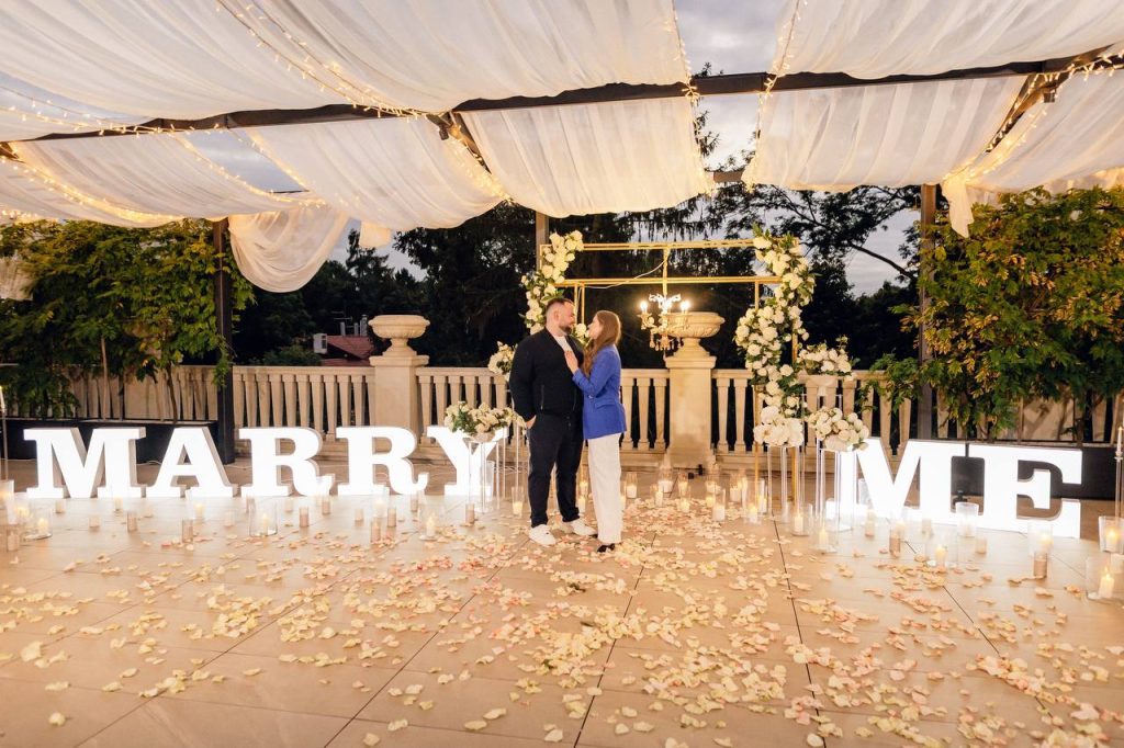 Наша команда забезпечить не тільки планування ідеального сценарію, але й вишукане оформлення локації. Ми подбаємо про кожну деталь – від романтичного декору зі свічками та квітковими композиціями до стильних акцентів, що підкреслять унікальність вашого моменту. Всі елементи будуть підібрані з урахуванням ваших побажань, щоб створити ідеальну атмосферу для освідчення.