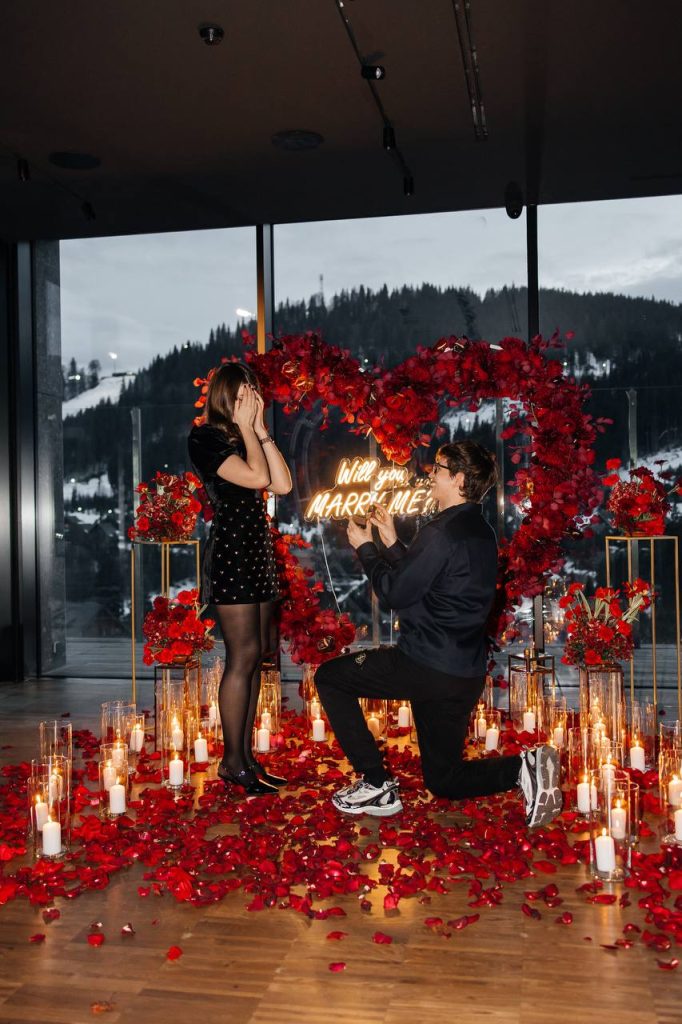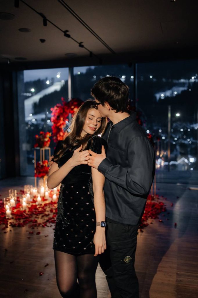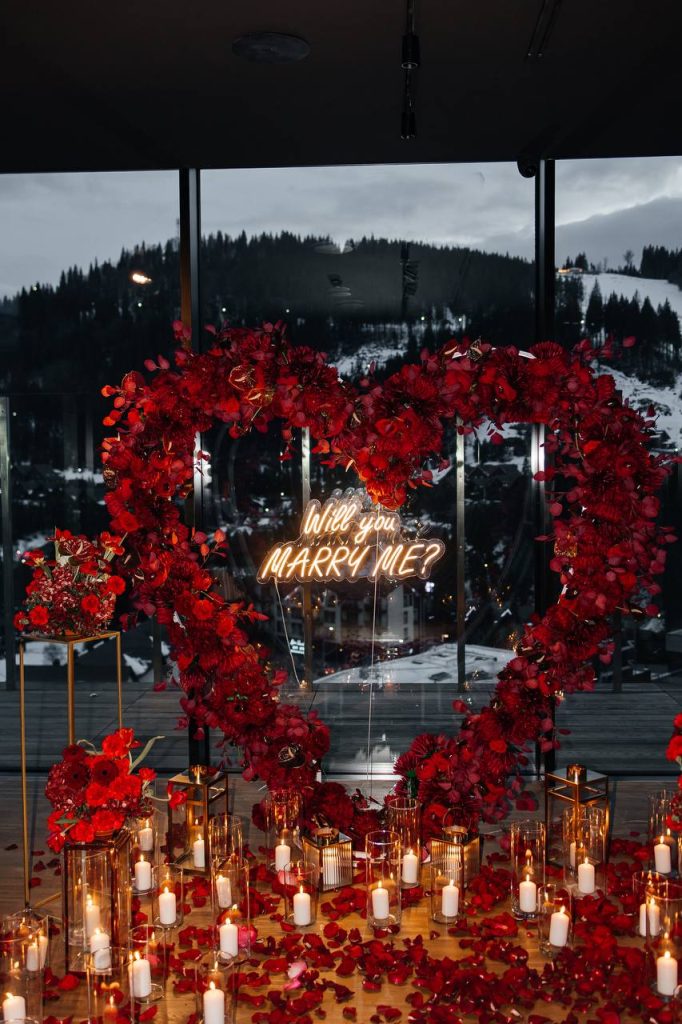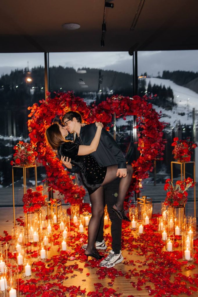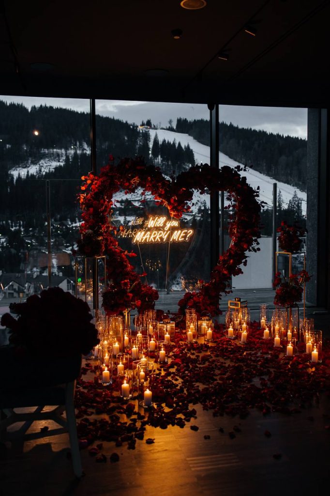Локація буде задекорована великою кількістю свічок, живими квітами та стильними романтичними акцентами. М’яке світло й вишуканий декор підкреслять важливість цього моменту.