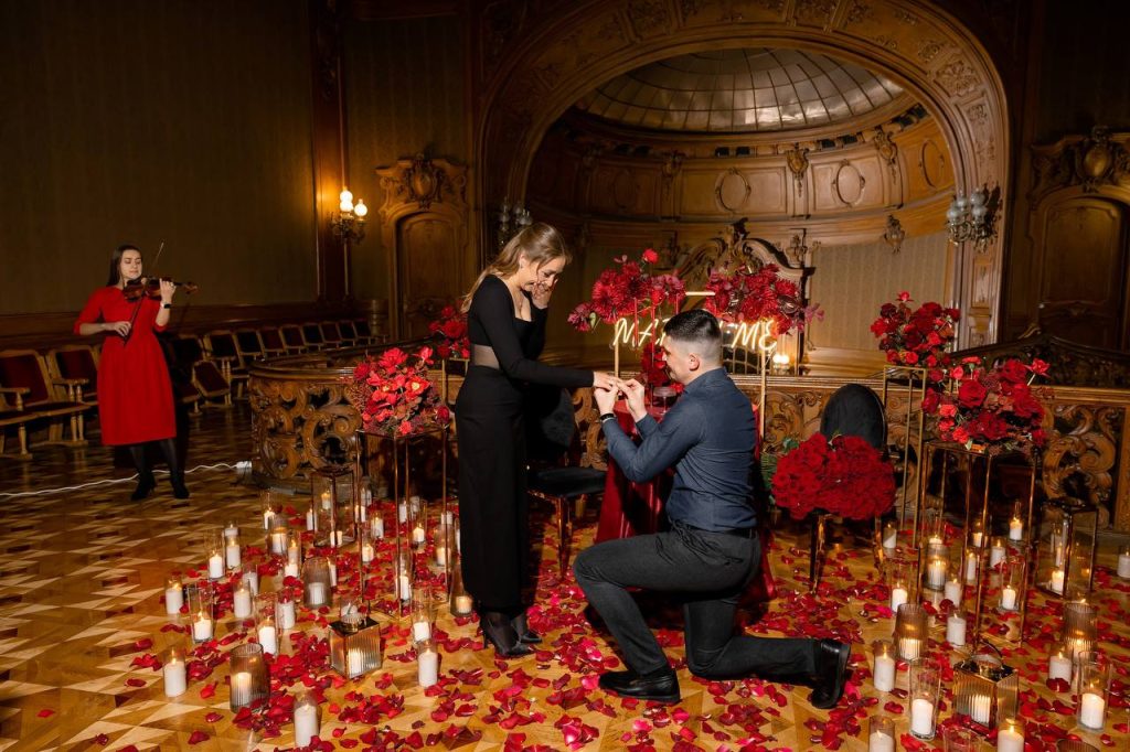 В цій незабутній атмосфері під мелодію скрипки хлопець зробив пропозицію руки і серця.
