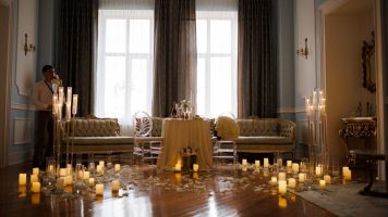 - Об’ємне оформлення свічками (50 шт) та пелюстками троянд;