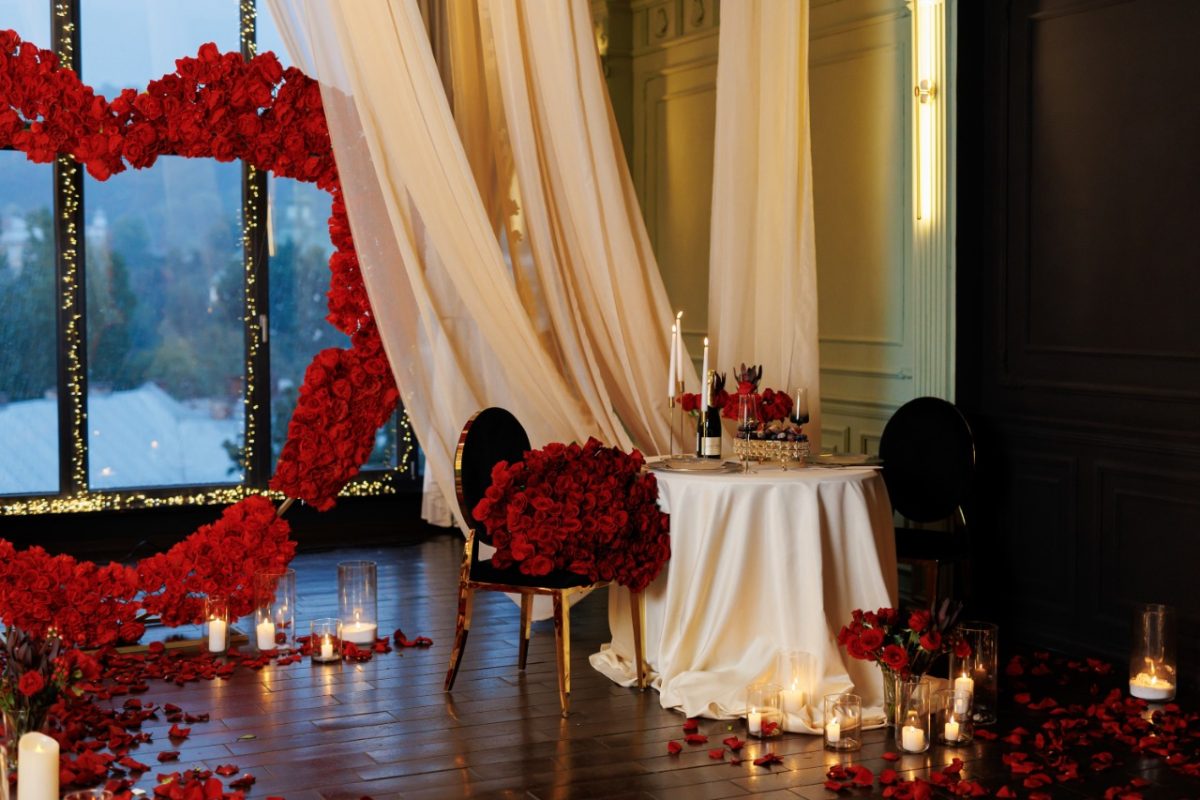 Локація буде прикрашена ліхтарями та декораціями, всипана пелюстками троянд, а все довкола буде мерехтіти від великої кількості гірлянд та свічок.