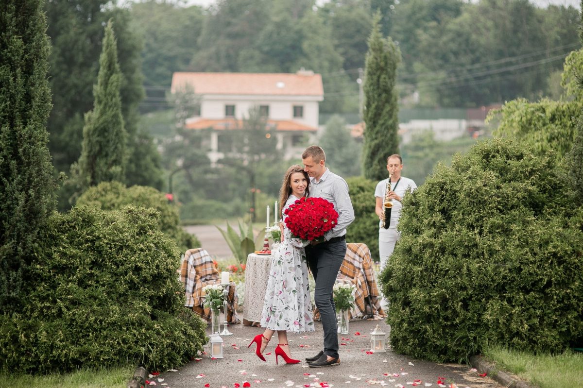Ніжність природи, казкове оформлення ліхтарями, декораціями, живими квітами та свічками створять незабутню атмосферу романтичного побачення.