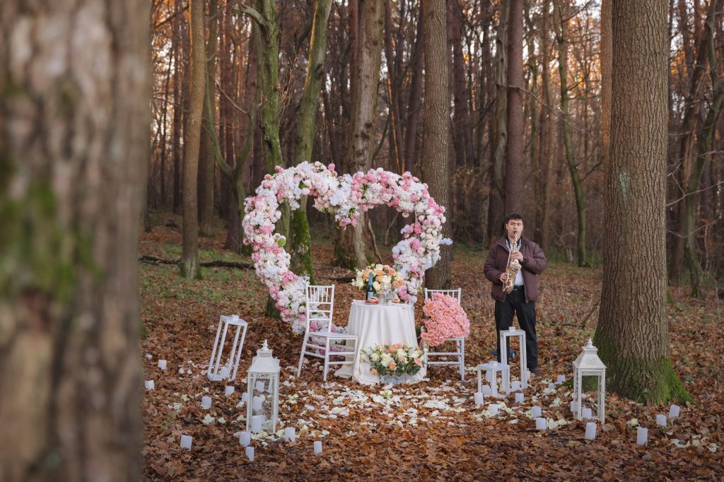 Випадково вони натрапили на затишну галявину, де на дівчину очікував дивовижний сюрприз – романтично оформлений столик в чарівній атмосфері.❤️ Повсюди горіли свічки, лунала улюблена мелодія дівчини..