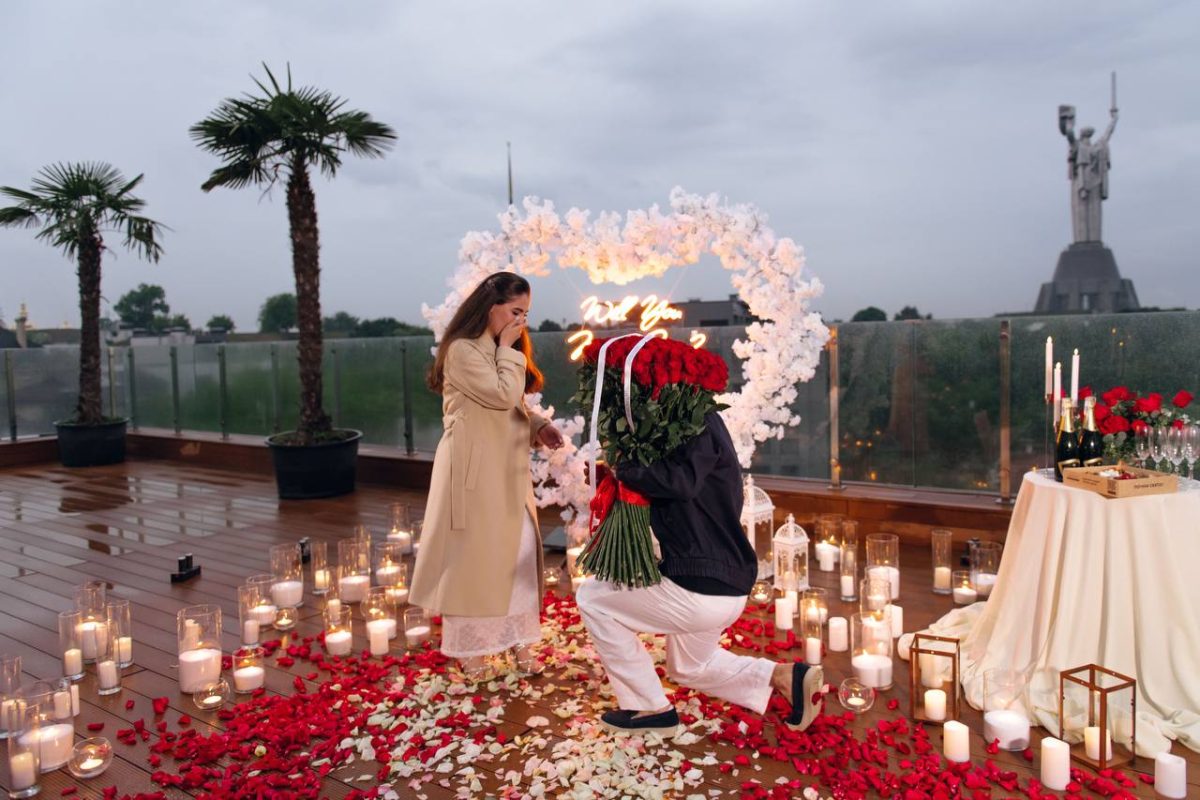 У цьому просторому та елегантному середовищі ви зможете освідчитися своїй половинці, насолоджуючись захоплюючим видом на історичний центр Києва. Ваша любов буде відблисками величі міста, створюючи момент, який залишиться у серці назавжди.