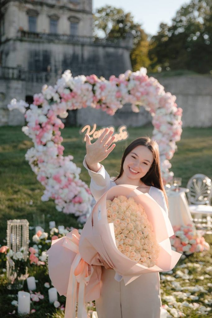 живими квітами, свічками та пелюстками.