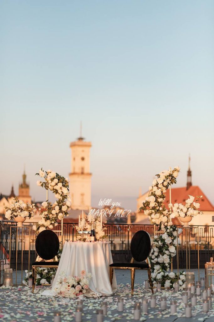 Додатковий декор: куби та стійки для квітів або арка з написом Will you marry me або Я тебе кохаю;