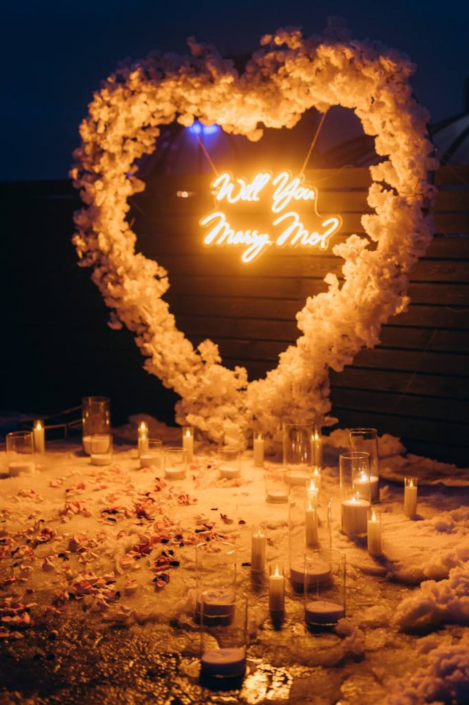 - Лед надпис «Will you marry me?» або «Кохаю тебе» (на вибір)