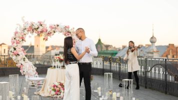 - Романтическое оформление локации (свечи, лепестки, цветы, декорации, фонари);